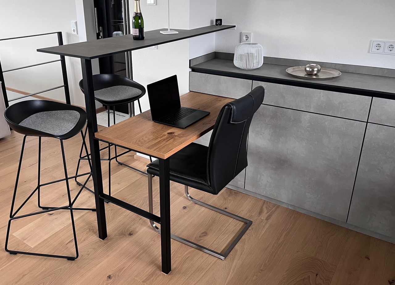 Auch bestehende Küchen lassen sich mit einer einfachen Veränderung spürbar aufwerten. Eine maßgefertigte Küchentheke kann zum Beispiel als praktische Erweiterung der Arbeitsfläche dienen oder zusätzliche Sitzplätze schaffen.