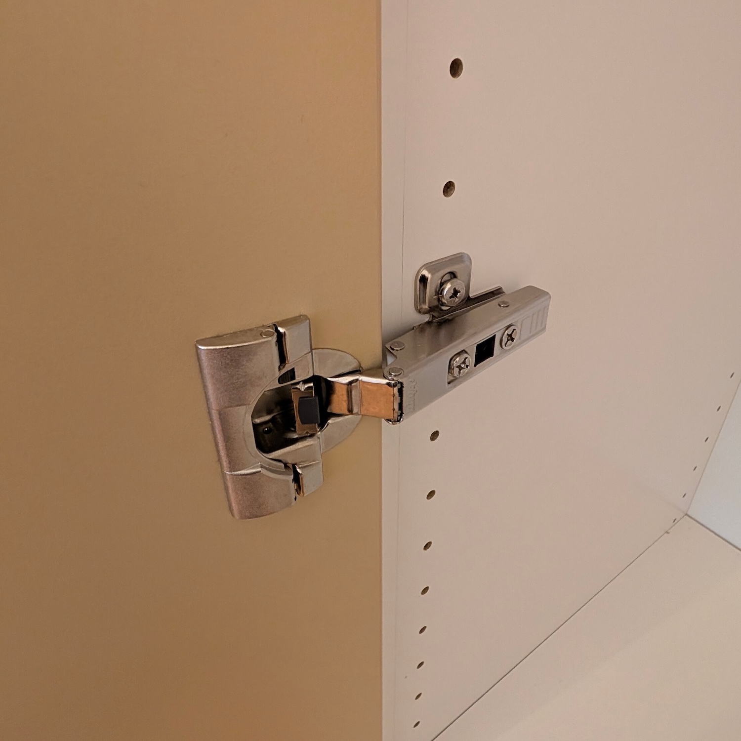 Da unsere alternativen PAX Türen nicht mit den IKEA Scharnieren kompatibel sind, liefern wir dir standardmäßig passende Scharniere mit. Diese bestehen aus zwei Komponenten: